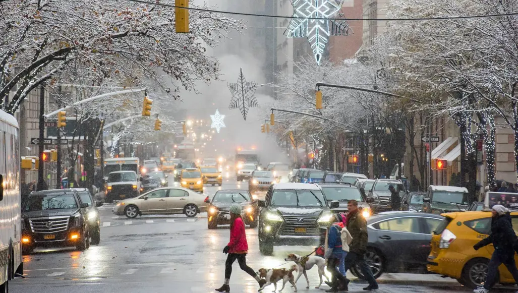 Điều kiện thời tiết vào mùa đông tại New York khá khắc nghiệt, nhiệt độ có thể xuống dưới 0°C, kèm theo gió lạnh và mưa phùn, khiến việc di chuyển gặp nhiều khó khăn nếu không chuẩn bị đúng cách. Trang phục giữ ấm như áo khoác dày, len, găng tay, mũ len, khăn quàng cổ là những vật dụng không thể thiếu. Đặc biệt, chọn giày chống trượt giúp bạn tránh ngã do mặt đường phủ tuyết hoặc đóng băng, an toàn hơn khi di chuyển trên các bề mặt trơn trượt.