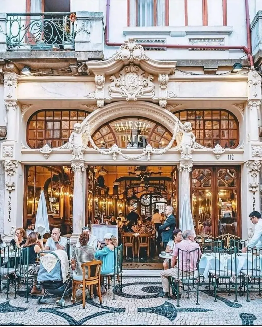 Nằm ở trung tâm thành phố Porto, Café Majestic mang đậm phong cách kiến trúc art nouveau, là biểu tượng của văn hoá cà phê Châu Âu trong lòng đất nước Bồ Đào Nha. Quán có nội thất lộng lẫy, trang trí cầu kỳ, với trần nhà cao, tượng, đèn chùm pha lê và các bàn ghế gỗ sang trọng, tạo nên cảm giác cổ kính, kiêu sa nhưng không kém phần ấm cúng.