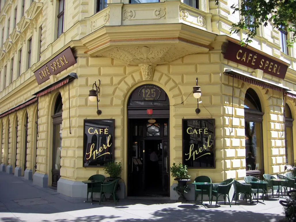 Lại một lần nữa Vienna, thành phố của hoa lệ, lịch sử, lại đưa đón du khách tới với quán cà phê Sperl, một trong những quán cà phê cổ kính tiêu biểu của văn hoá cà phê Châu Âu. Nằm tại trung tâm thành phố, quán café này nổi bật với lối kiến trúc cổ điển, gỗ sồi sang trọng, bàn ghế cổ và bức tranh tường mô tả về cuộc sống của Vienna xưa cũ. Đặc biệt, vào mùa thu, khí hậu mát mẻ khiến cảnh vật quanh quán càng thêm phần lãng mạn, phù hợp để thưởng thức các loại cà phê đặc trưng của Áo.