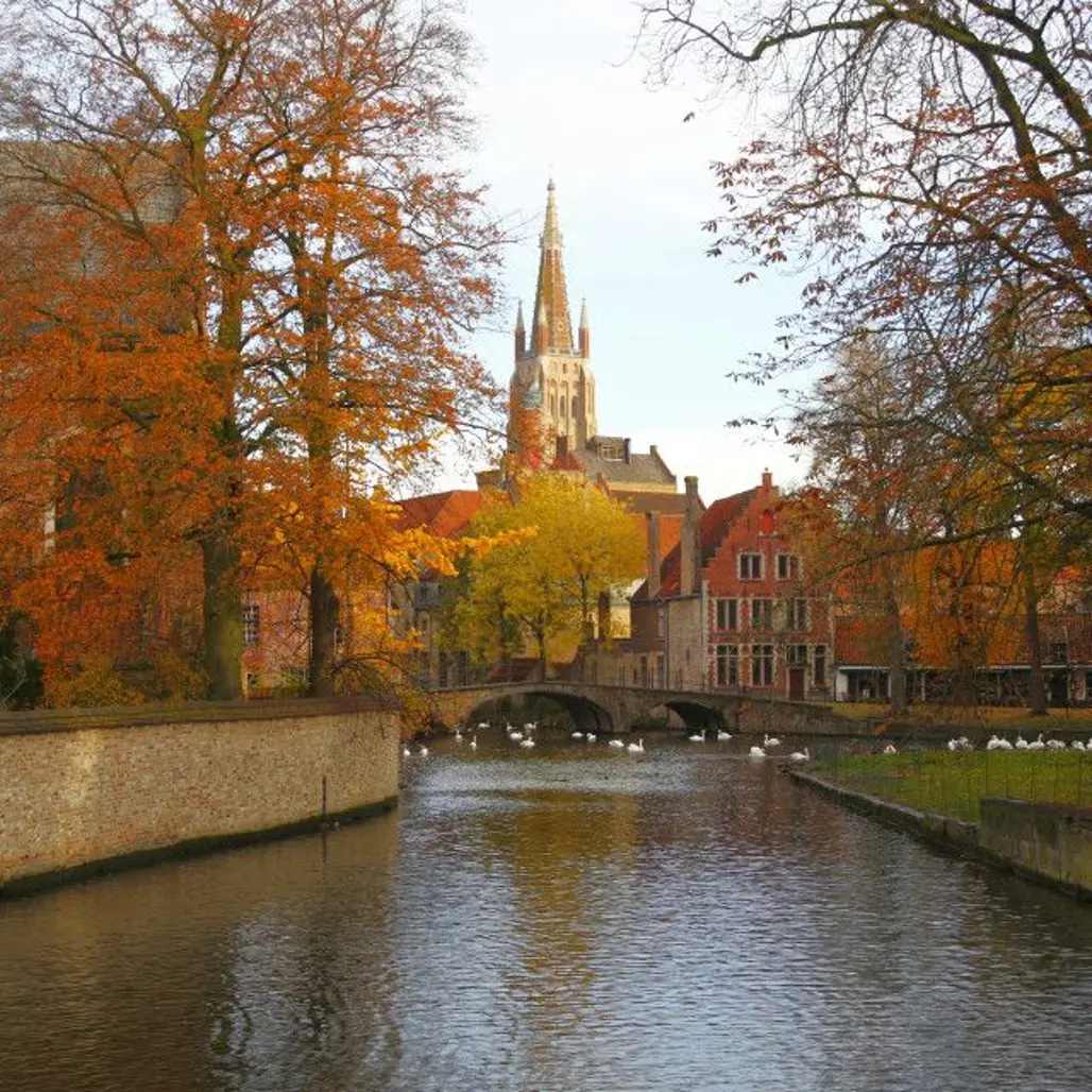 Khi nghĩ đến một thành phố lãng mạn Châu Âu mùa thu, Bruges luôn là điểm sáng đặc biệt trong lòng du khách. Nơi đây nổi bật với nét cổ kính, hoài niệm, nơi những căn nhà mái ngói nâu đỏ, những con đường lát đá cổ khảm vàng như bước ra từ các câu chuyện cổ tích thời trung cổ. Mùa thu khiến vùng đất này thêm phần quyến rũ, lặng lẽ và thơ mộng hơn bao giờ hết.
