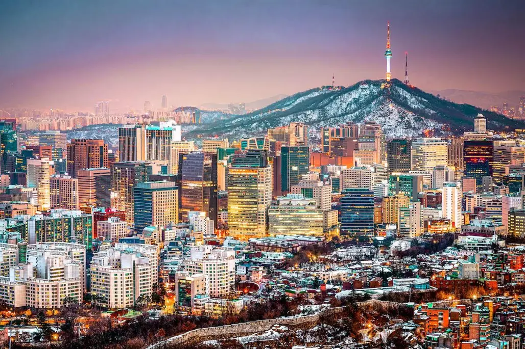 Mùa đông phủ trắng khắp nơi, từ các con phố cổ, hàng cây đến tòa nhà cao tầng. Dãy núi Baekdusan phủ tuyết trắng hùng vĩ, các công viên như Namsan hay Hangang Park cũng trở nên lãng mạn, thích hợp để dạo chơi và chụp ảnh. Từ Seoul Tower hay Bukchon Hanok Village, du khách có thể quan sát toàn cảnh mùa đông với ánh sáng lung linh từ các lễ hội, tạo khung cảnh trữ tình và mê hoặc.