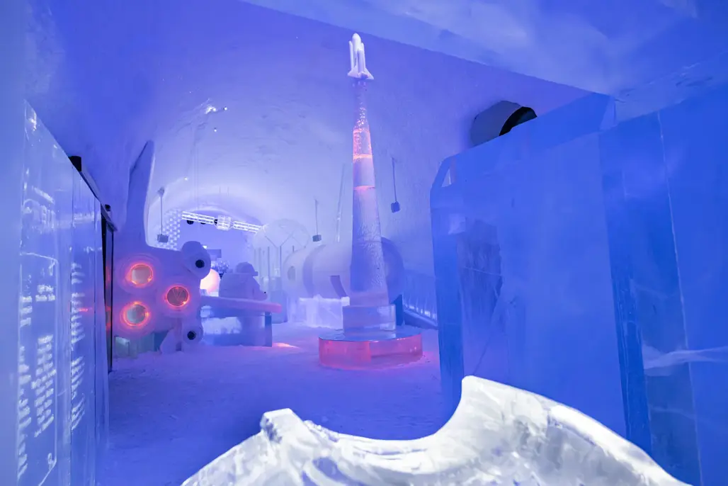 Khác với công trình thông thường, toàn bộ không gian được xây dựng từ băng và tuyết tự nhiên lấy từ sông Torne. Dưới bàn tay nghệ nhân tài hoa, những khối băng trở thành tường, trần và các tác phẩm điêu khắc tinh xảo. Ánh sáng phản chiếu trên mặt băng trong suốt mang đến cảm giác huyền ảo, yên bình.