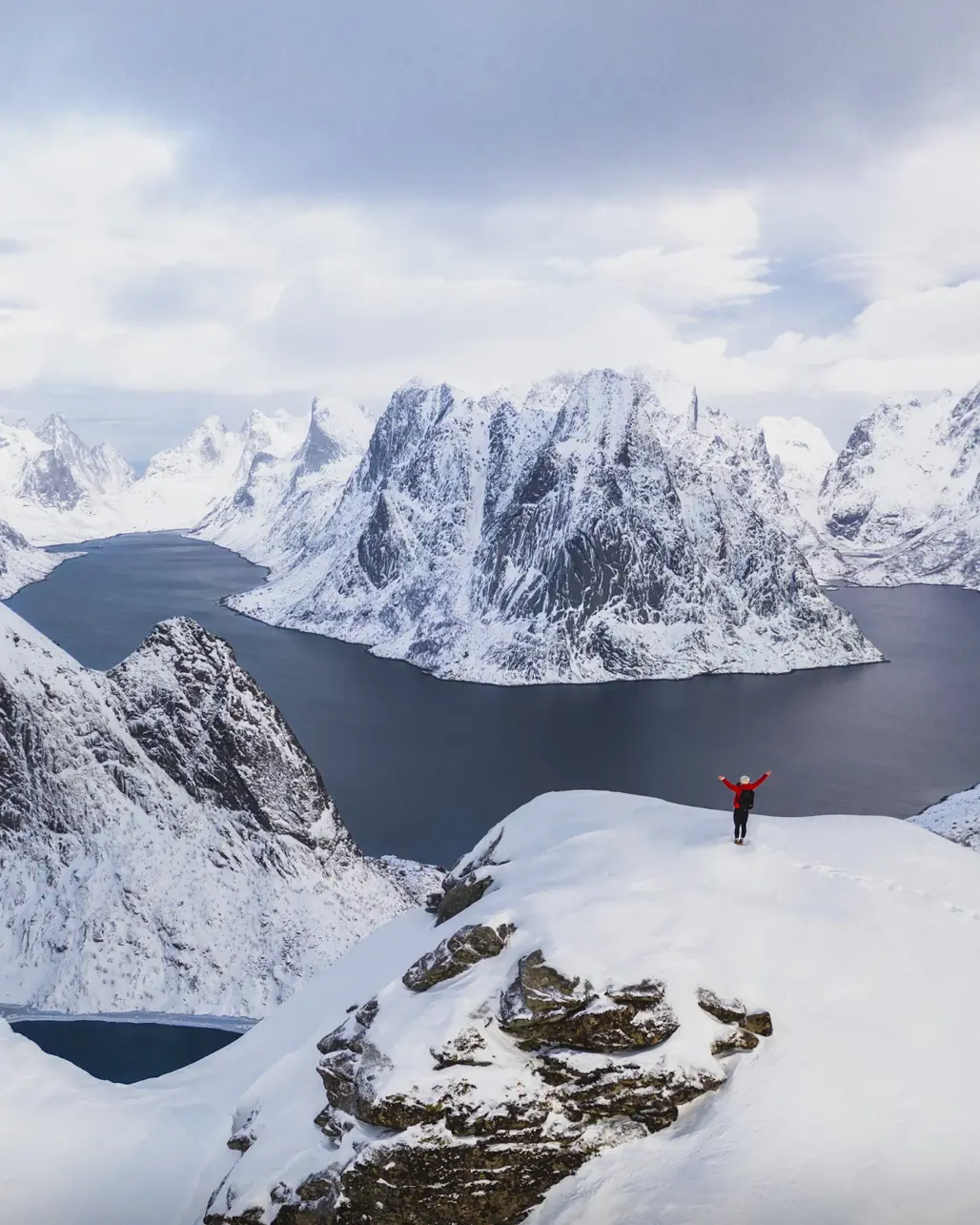 Nằm ở phía Bắc Na Uy, quần đảo Lofoten là thiên đường mùa đông dành cho các nhiếp ảnh gia và người yêu cái đẹp. Với những ngôi nhà đỏ rorbu nằm bên vịnh băng, làng chài cổ ẩn mình dưới tuyết, và bầu trời ngập tràn dải ngân hà, nơi đây là giấc mơ của bất kỳ ai mê nhiếp ảnh du lịch.