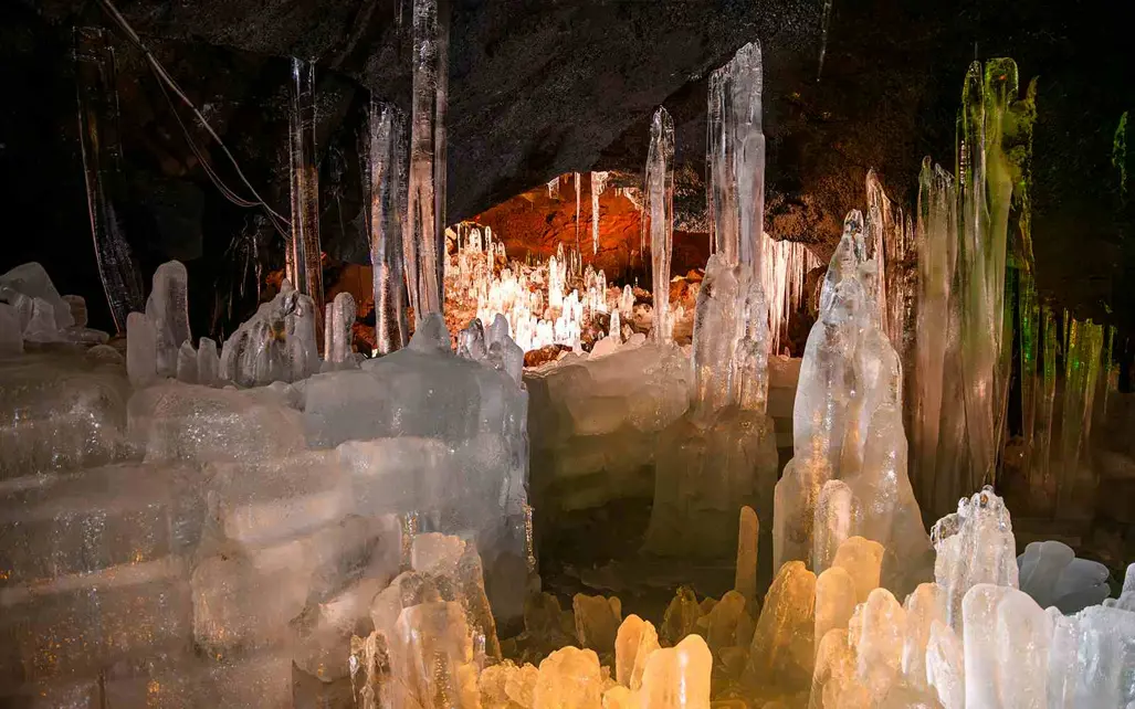 Đi sâu vào bên trong, chúng ta sẽ gặp các hành lang hẹp, uốn lượn quanh co như mê cung, hình thành từ các dòng dung nham nguội. Các bức tường là những khối băng tự nhiên cao hơn 3 mét, được phủ kín bề mặt, lung linh dưới ánh sáng, tạo nên cảm giác vừa kỳ vĩ, vừa kỳ bí. Các khối băng này đều có đặc điểm rõ ràng của quá trình hình thành tự nhiên, mang lại vẻ đẹp riêng biệt không thể tìm thấy ở bất kỳ nơi đâu khác.