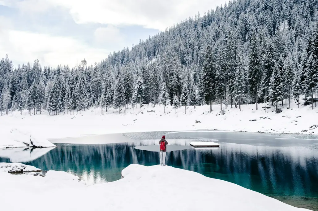 Hồ băng và hồ nước tự nhiên cũng khoác áo choàng băng giá, phản chiếu bầu trời trong xanh và các dãy núi cao phía sau một cách kỳ diệu. Những rừng thông phủ đầy tuyết, cây cối nhấp nhô trong lớp tuyết dày, càng làm tăng vẻ đẹp hoang sơ và huyền bí của thiên nhiên Thụy Sĩ.