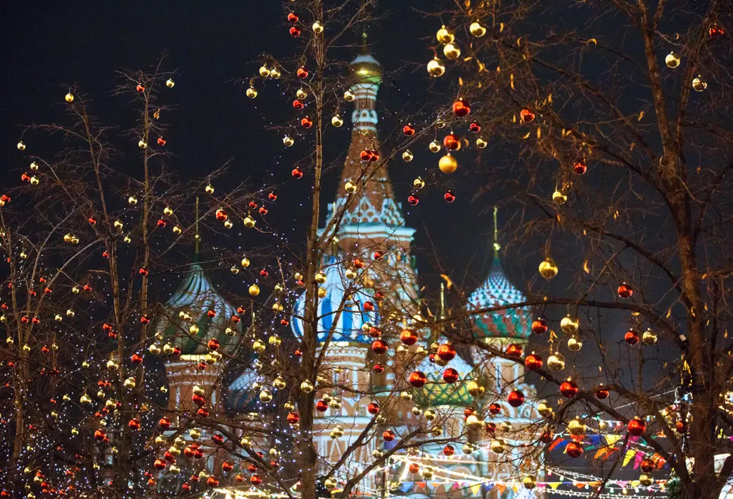 Người Nga đón Giáng sinh vào ngày 7/1, khác với nhiều quốc gia phương Tây, còn Năm mới Nga diễn ra từ đêm 31/12 đến rạng sáng 1/1, là sự kiện quan trọng nhất trong năm. Trong thời gian này, các thành phố lớn tràn ngập ánh đèn, pháo hoa, âm nhạc và các bữa tiệc sôi động. Người dân tham dự thánh lễ, hát thánh ca, chuẩn bị bữa ăn truyền thống gồm bánh nướng, cá hồi, trái cây khô và bánh ngọt, mang đến không khí ấm áp, an lành.