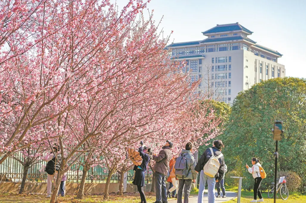 Là một trong những trường đại học danh giá của Trung Quốc, đại học Vũ Hán nổi bật với hàng cây sakura trải dài trong khuôn viên. Mùa hoa nở, khuôn viên trường trở thành điểm check-in yêu thích của sinh viên, du khách mỗi dịp mùa xuân đến.