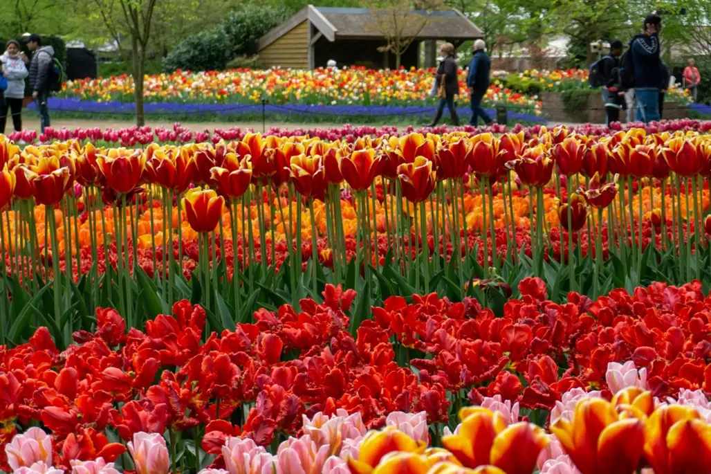 Du khách khi đặt chân đến đây chẳng thể không bị choáng ngợp trước vẻ đẹp của biển hoa rực rỡ. Các loài hoa được bố trí thành từng cụm, từng hàng, từng mảng màu sắc đều phối hợp rất hài hòa, tạo thành một bức tranh sống động, cực kỳ photogenic. Mùa xuân tại Keukenhof là thời điểm các loài hoa nở rộ nhất, tràn đầy sức sống và cảm xúc, như đúng với khẩu hiệu “mùa hoa của Hà Lan”. Chính sự đa dạng về chủ đề và quy mô này khiến bucketlist Keukenhof Châu Âu luôn đứng đầu trong các lựa chọn của du khách yêu thích khám phá hoa tươi.