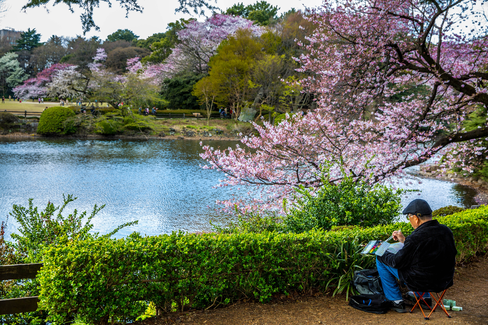 Là một trong những công viên rộng lớn và đa dạng loại hình hoa, Shinjuku Gyoen nổi bật với những khu vườn Nhật truyền thống, cây cổ thụ lâu năm và đặc biệt là khu vực trồng hoa anh đào phong phú. Đến đây vào mùa xuân, du khách sẽ được thưởng thức không khí trong lành, yên tĩnh, tự do đắm mình trong khung cảnh đẹp đẽ, tĩnh lặng và quyến rũ của những cây hoa anh đào được trồng từ các giống khác nhau.