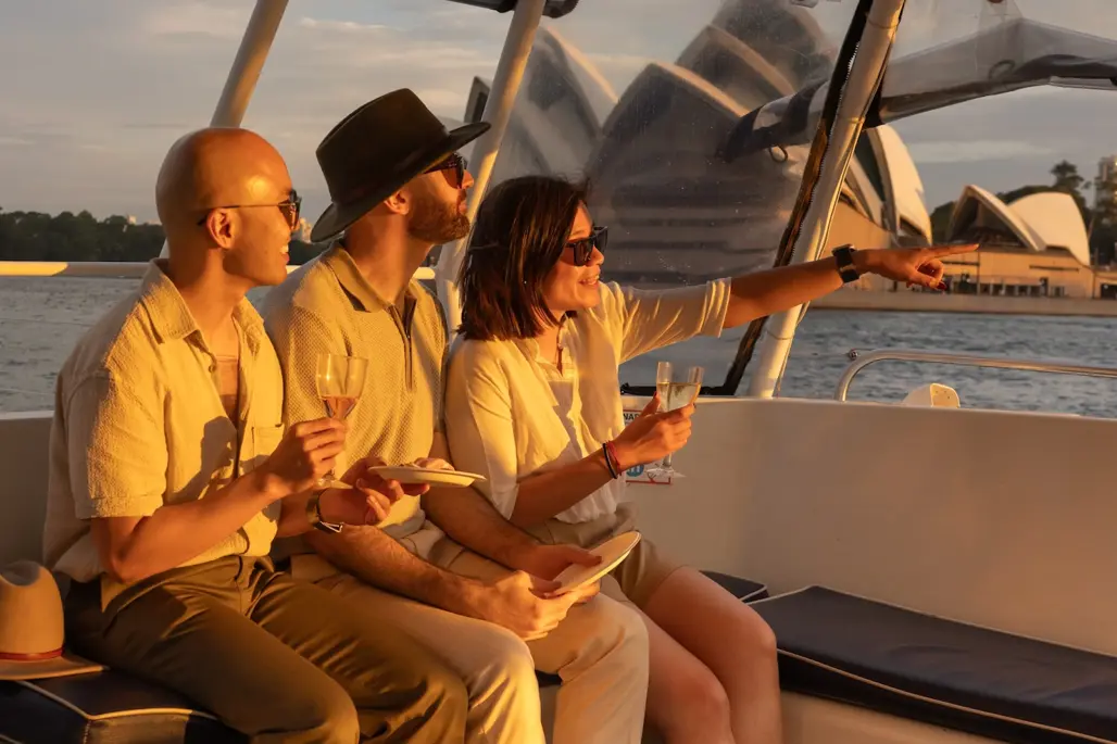 Với các cặp đôi hoặc du khách muốn trải nghiệm Sydney theo cách tinh tế hơn, chuyến thuyền ngắm hoàng hôn hoặc ăn tối trên vịnh luôn là gợi ý hấp dẫn. Khi ánh chiều buông xuống, đường viền của Sydney Opera House và Harbour Bridge trở nên lung linh hơn rất nhiều, tạo nên một không gian sang trọng, thư giãn và cực kỳ đáng nhớ.
