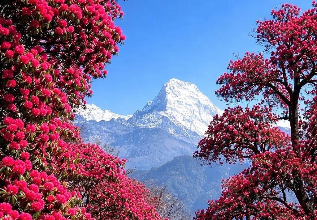 Giữa những cung đường trekking thanh bình của dãy Himalaya, hoa đỗ quyên Bhutan nở rực như một dải màu mềm mại phủ lên sườn núi, rừng thông và các lối mòn mây phủ. Mùa xuân ở Bhutan, đặc biệt từ khoảng tháng 3 đến tháng 5, là thời điểm lý tưởng để vừa trekking vừa săn ảnh hoa đỗ quyên; riêng khu Lamperi – Dochula còn nổi tiếng với lễ hội đỗ quyên diễn ra vào mùa xuân, nơi du khách có thể ngắm nhiều loài nở rộ trong tự nhiên. Với những ai yêu thiên nhiên và nhiếp ảnh, đây không chỉ là hành trình check-in, mà còn là cơ hội lưu lại những ảnh đẹp Bhutan đầy chiều sâu, nơi sắc hoa, sương núi và nhịp bước trekking hòa làm một._1.jpg)