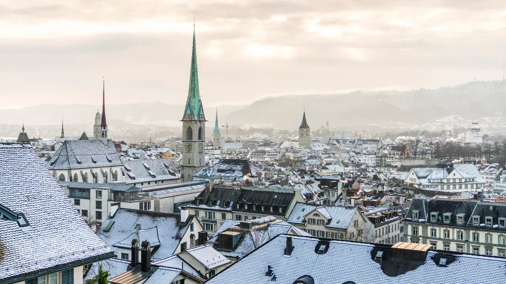 Zurich là một trong những điểm đến Châu Âu mùa đông nổi bật, nơi hội tụ cảnh quang thiên nhiên tuyệt đẹp và nền văn hóa đặc sắc. Khi mùa đông về, hồ Zurich trở nên tĩnh lặng, xung quanh là các dãy núi phủ tuyết trắng, làm nền cho thành phố cổ kính đẹp như tranh vẽ. Những hoạt động ngoài trời như trượt tuyết, trượt băng hay leo núi, sẽ đem lại trải nghiệm hấp dẫn không thể bỏ lỡ.