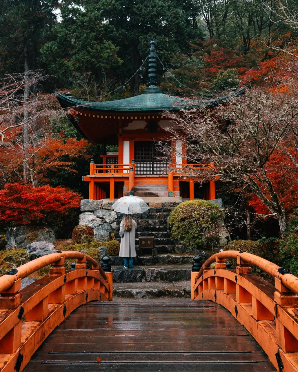 Yếu tố làm nên sức hấp dẫn của du lịch Nhật Bản mùa thu chính là các di tích lịch sử, cố đô Kyoto, nổi bật với hàng trăm đền chùa cổ kính và các khu vườn truyền thống. Vào mùa lá đỏ, các con đường cổ kính như Arashiyama, Philosopher's Path, hoặc quanh các cung điện chính thức phủ một lớp áo mới quyến rũ của màu đỏ, vàng.