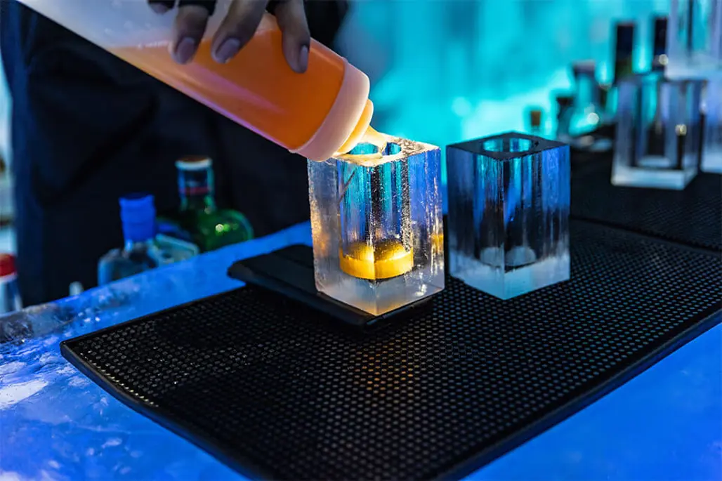 Trong các dịch vụ này, khách còn có thể tận hưởng không gian quán bar băng độc đáo, nơi pha chế những ly cocktail, đồ uống mang đậm màu sắc và tinh thần của Bắc Cực. Không khí trong lành, vẻ đẹp của băng đá, cùng sự phục vụ tận tình sẽ giúp bạn cảm thấy thoải mái, an nhiên như đang lạc vào một câu chuyện thần thoại thực sự.