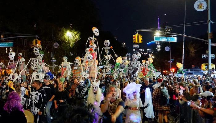 Thủ đô văn hóa nước Mỹ luôn nằm trong top điểm đến du lịch Mỹ Halloween được yêu thích nhất. Mùa Halloween Mỹ 2025, New York tổ chức lễ diễu hành hóa trang hoành tráng trên đại lộ Broadway, quy tụ hàng nghìn người tham dự và hàng triệu khán giả theo dõi trực tiếp.