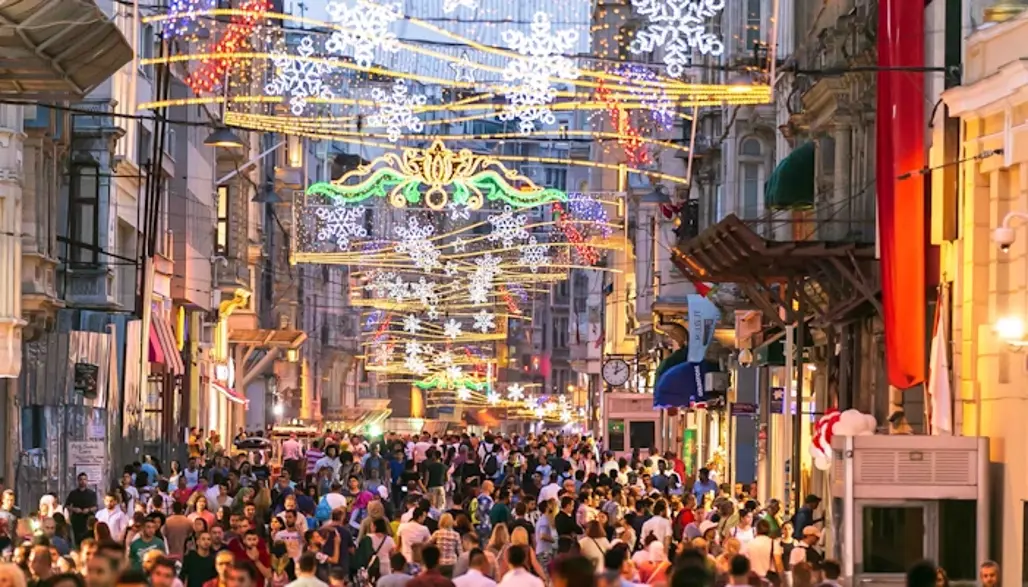 Khi nhắc tới Istanbul đêm Giao thừa, không thể bỏ qua Taksim Square và con phố Istiklal nổi tiếng. Đây chính là trung tâm của sự kiện đếm ngược, nơi hàng nghìn người tập trung để chào đón năm mới trong không khí vui tươi. Phố đi bộ Istiklal, từ những quán cà phê nhỏ, nhà hàng, cho đến các trung tâm thương mại lớn đều trang hoàng lộng lẫy, đèn hoa sáng rực, tạo nên một khung cảnh lãng mạn, sôi động.