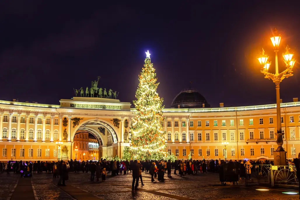 Saint Petersburg mang vẻ đẹp lãng mạn, cổ kính với các công trình kiến trúc tuyệt đẹp như Bảo tàng Hermitage, Cung điện Mùa Đông. Vào mùa lễ hội, thành phố còn tổ chức các chương trình âm nhạc, hội chợ và triển lãm đặc sắc gắn liền với tinh thần Novy God Nga truyền thống.