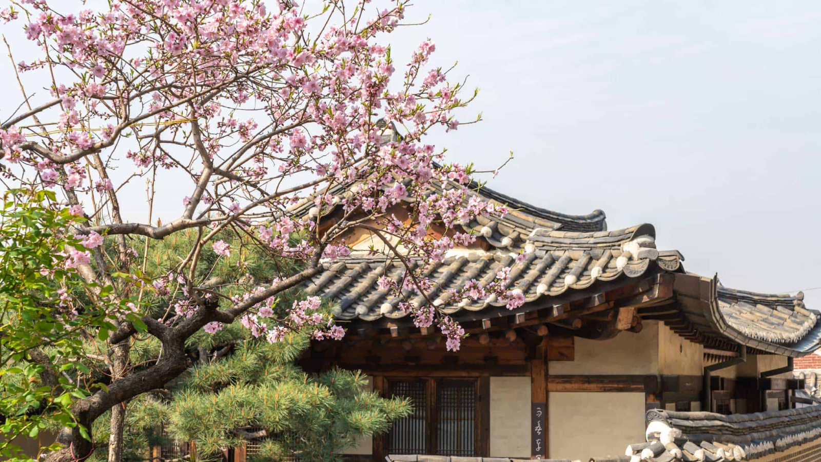 Sự giao thoa giữa kiến trúc hanok và sắc hoa xuân