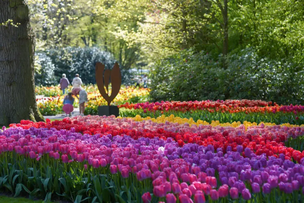 Du khách khi đặt chân đến đây chẳng thể không bị choáng ngợp trước vẻ đẹp của biển hoa rực rỡ. Các loài hoa được bố trí thành từng cụm, từng hàng, từng mảng màu sắc đều phối hợp rất hài hòa, tạo thành một bức tranh sống động, cực kỳ photogenic. Mùa xuân tại Keukenhof là thời điểm các loài hoa nở rộ nhất, tràn đầy sức sống và cảm xúc, như đúng với khẩu hiệu “mùa hoa của Hà Lan”. Chính sự đa dạng về chủ đề và quy mô này khiến bucketlist Keukenhof Châu Âu luôn đứng đầu trong các lựa chọn của du khách yêu thích khám phá hoa tươi.