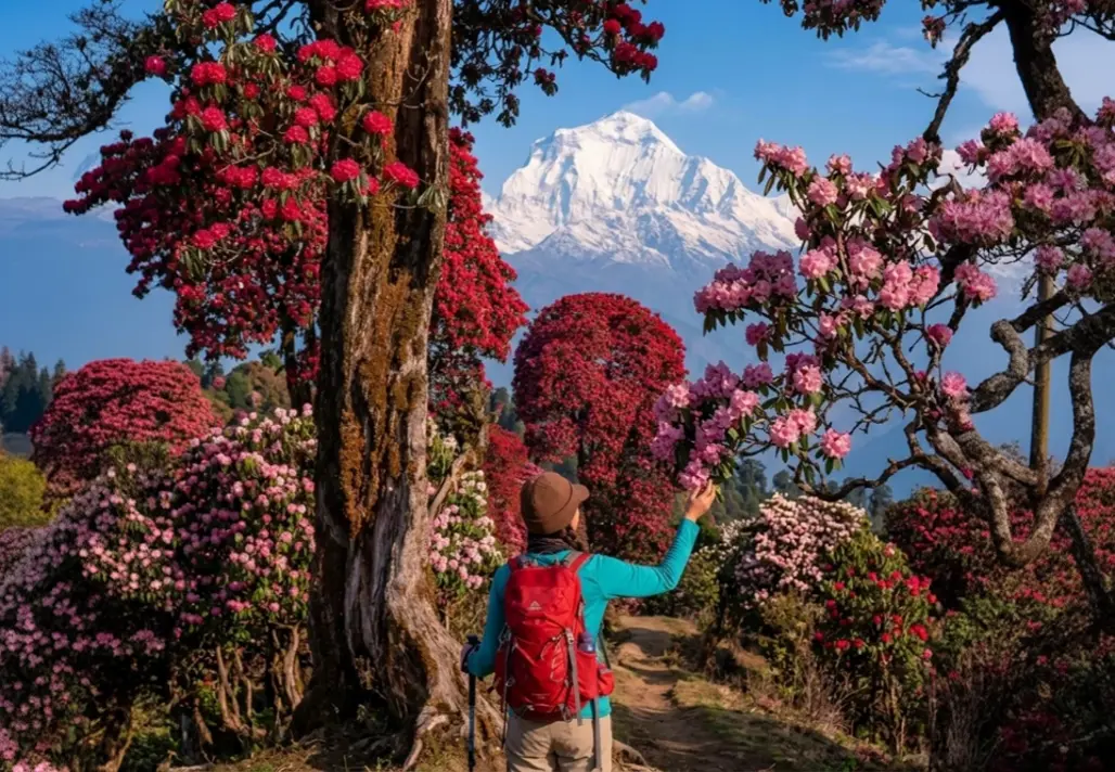 Giữa những cung đường trekking thanh bình của dãy Himalaya, hoa đỗ quyên Bhutan nở rực như một dải màu mềm mại phủ lên sườn núi, rừng thông và các lối mòn mây phủ. Mùa xuân ở Bhutan, đặc biệt từ khoảng tháng 3 đến tháng 5, là thời điểm lý tưởng để vừa trekking vừa săn ảnh hoa đỗ quyên; riêng khu Lamperi – Dochula còn nổi tiếng với lễ hội đỗ quyên diễn ra vào mùa xuân, nơi du khách có thể ngắm nhiều loài nở rộ trong tự nhiên. Với những ai yêu thiên nhiên và nhiếp ảnh, đây không chỉ là hành trình check-in, mà còn là cơ hội lưu lại những ảnh đẹp Bhutan đầy chiều sâu, nơi sắc hoa, sương núi và nhịp bước trekking hòa làm một._1.jpg)