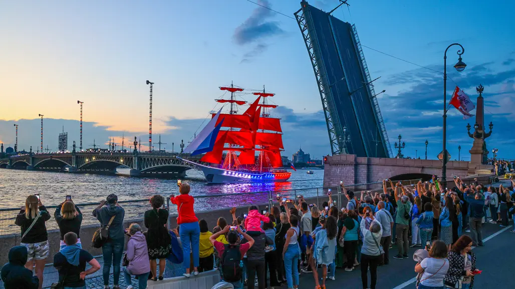 Nếu bạn muốn tìm một sự kiện vừa lãng mạn vừa mang tính biểu tượng mạnh, Scarlet Sails là gợi ý rất đáng cân nhắc. “Alye Parusa” là lễ hội dành cho học sinh tốt nghiệp ở St. Petersburg, thường diễn ra vào cuối tháng 6 trên Quảng trường Cung điện và vùng nước sông Neva. Điểm nhấn là con tàu mang cánh buồm đỏ xuất hiện giữa đêm Bạch Dạ cùng pháo hoa và chương trình biểu diễn quy mô lớn.