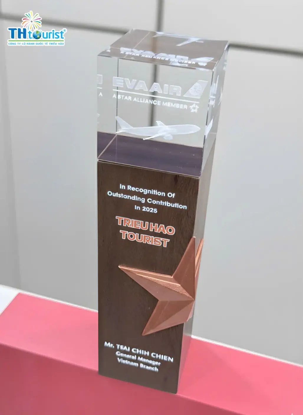 Sáng ngày 13/01/2026, Du Lịch Triều Hảo vinh dự được Hãng hàng không EVA Air trao tặng giải thưởng/cúp ghi nhận những đóng góp nổi bật trong năm 2025. Đây là cột mốc quan trọng, thể hiện sự đánh giá cao từ một hãng hàng không quốc tế uy tín đối với Du Lịch Triều Hảo trong quá trình hợp tác, phát triển sản phẩm và phục vụ khách hàng.
